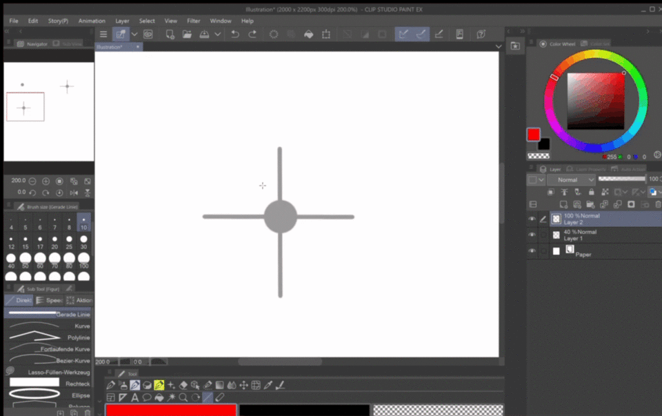 Allez dans l'outil "Figure" et utilisez le pinceau "Ligne droite" (taille 10).
