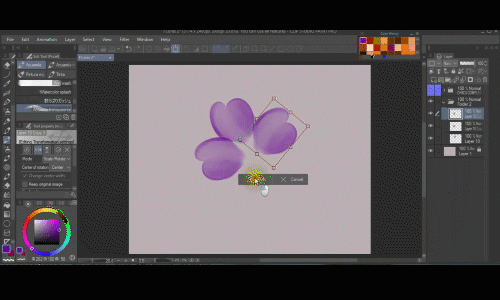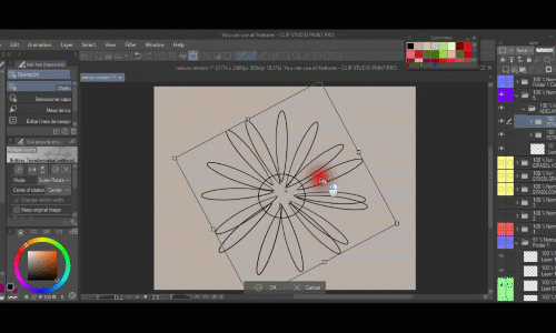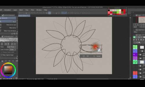 Ensuite, nous utilisons l'outil Échelle/rotation pour déplacer les pétales