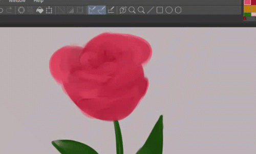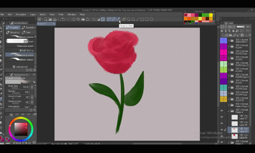 Je crée un nouveau calque et je dessine la silhouette de la rose avec le pinceau aquarelle transparent, puis je crée un autre calque et j'active le masque de calque. Ensuite, avec une couleur rose clair, je dessine mes lignes guides.