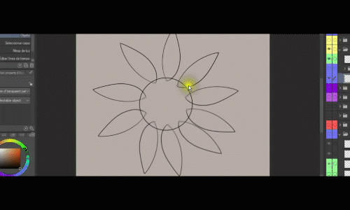 Ensuite, je commence à séparer les pétales principaux des secondaires en effaçant les lignes qui ne devraient pas être visibles, et je répète la même chose sur chaque calque.