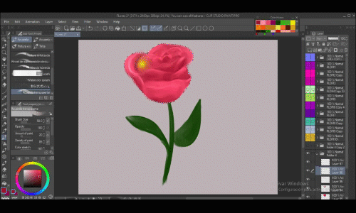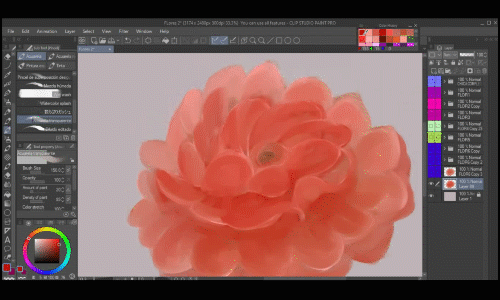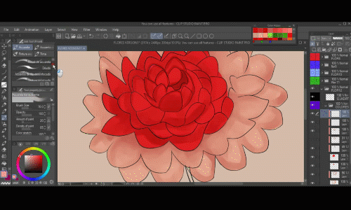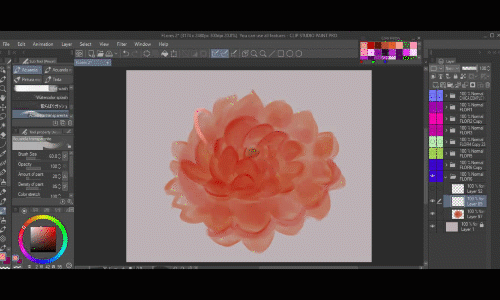 Je reviens au premier calque et je donne une autre touche de couleur à la fleur car elle semblait trop transparente.
