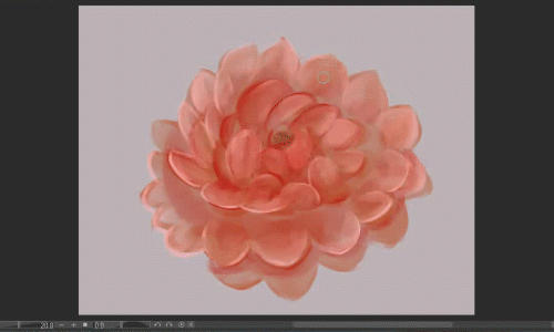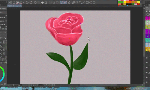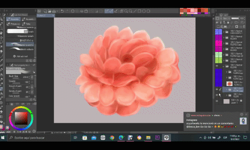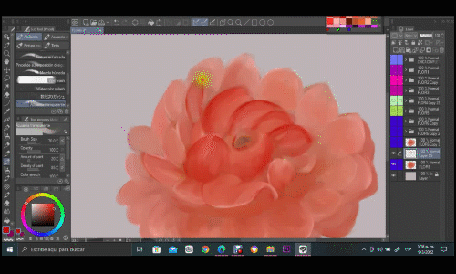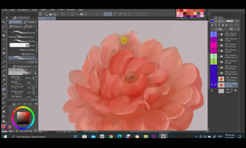 Et maintenant, je vais sur un nouveau calque au-dessus des autres et j'active le mode de fusion, j'utilise une nuance de rose, alors je commence à peindre chaque pétale et avec le même pinceau, je l'estompe.