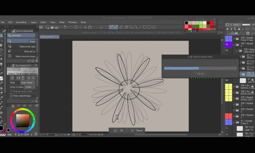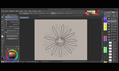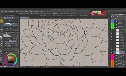 Et ainsi de suite, j'ajoute des calques pour une certaine quantité de pétales car je veux pouvoir effacer et entrelacer certains tracés à la fin.