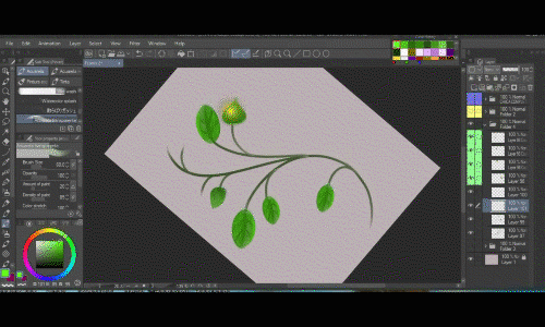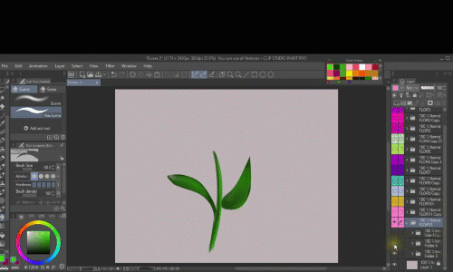 Je crée un nouveau dossier et je dessine la tige ainsi qu'une feuille. Une fois que j'ajoute quelques détails à la feuille, je la duplique, puis je la fais pivoter avec l'option