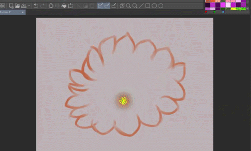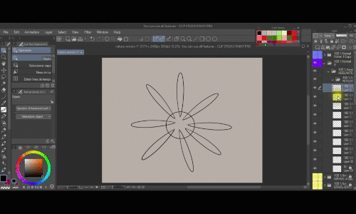 Donc je crée un nouveau dossier et un nouveau calque. Et je dessine plus ou moins les lignes guides de la fleur.