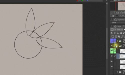 Je duplique le dossier de la fleur et je retire la visibilité à l'original, puis je fusionne la copie du dossier, vous pouvez le faire avec les commandes