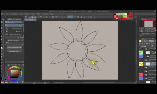 En résumé, j'ai 4 dossiers de pétales et, enfin, j'utilise l'outil Lasso pour repositionner certains pétales qui me semblent mal placés.