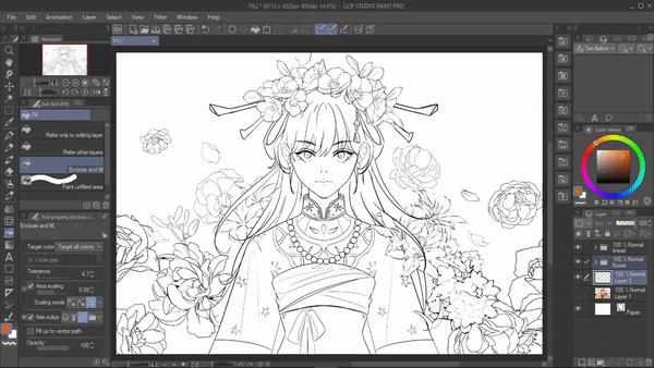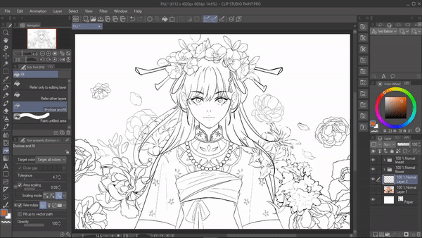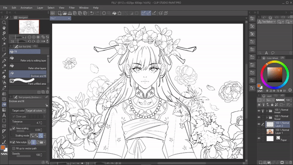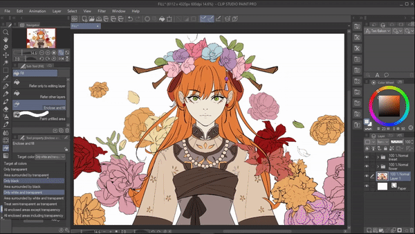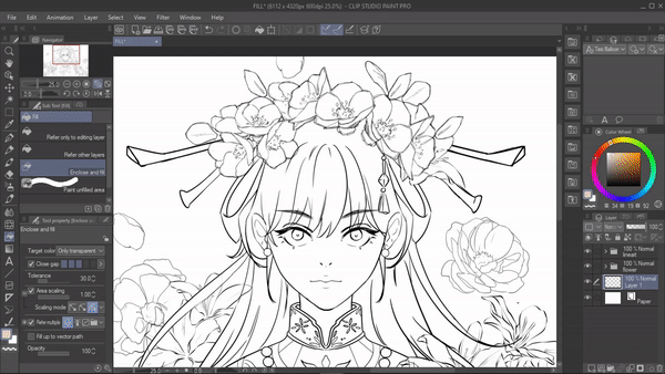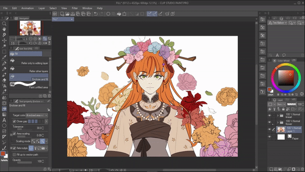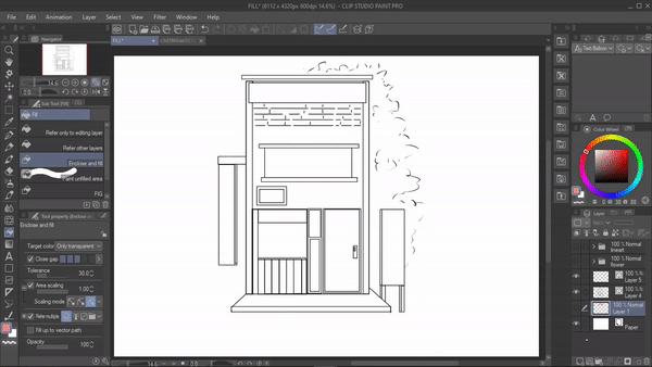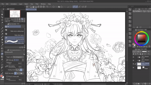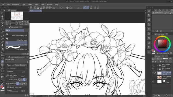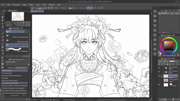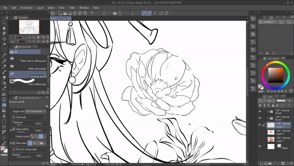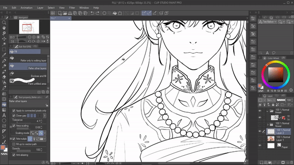 Enfin, nous avons "Peindre les zones non remplies". Vous pouvez simplement dessiner ou l'appliquer autour de votre lineart et il remplira ces zones (fermées).