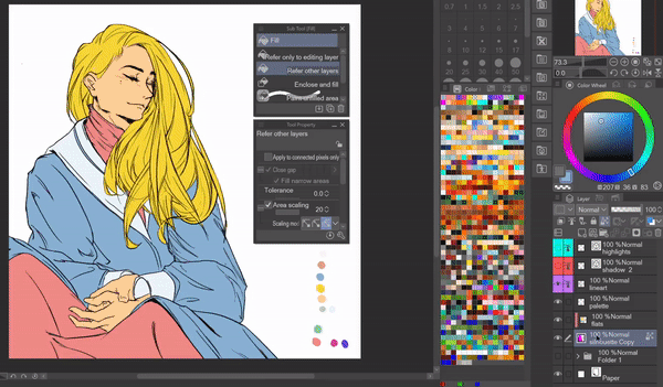 Clip Studio Paint est livré avec de nombreux paramètres variés pour tous ses outils, et l'outil [Remplir] ne fait pas exception. En plus de poser les couleurs de base, il est également très efficace pour l'ombrage cel.