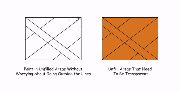 Le quatrième sous-outil, [Peindre la zone non remplie], est idéal pour les très petits espaces qui sont autrement laissés non remplis parce qu'ils sont trop petits ou proches des bords.