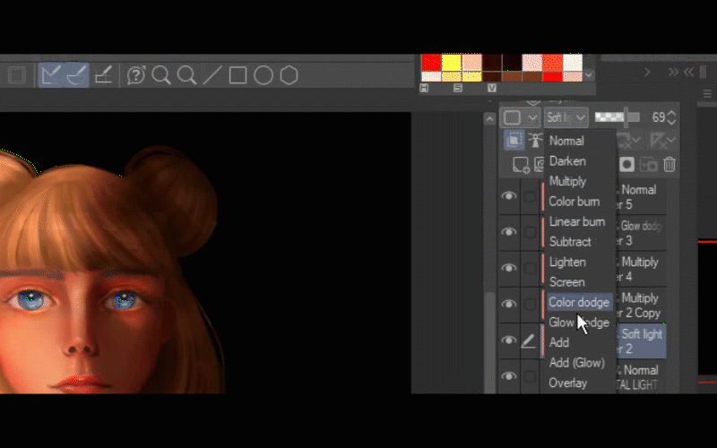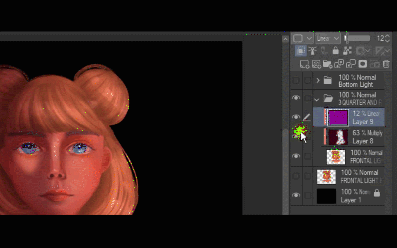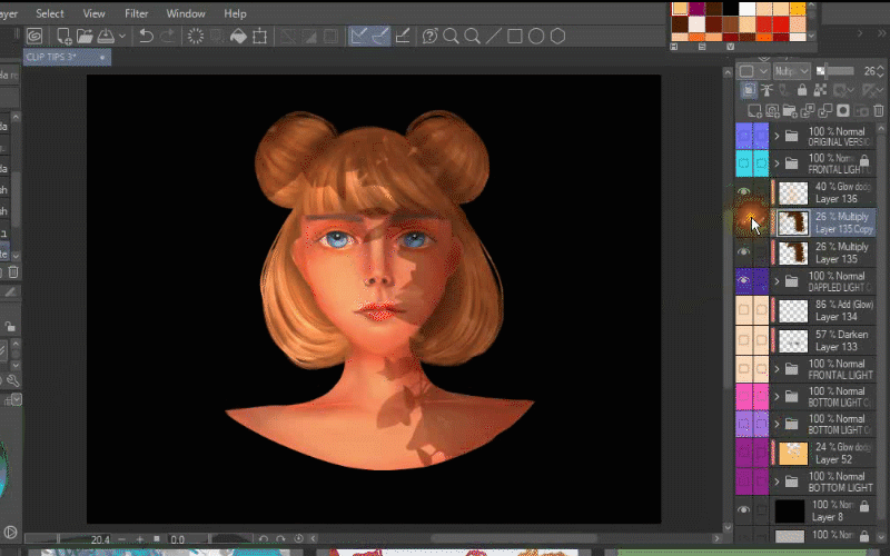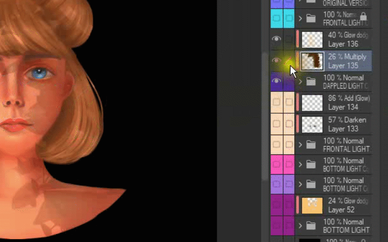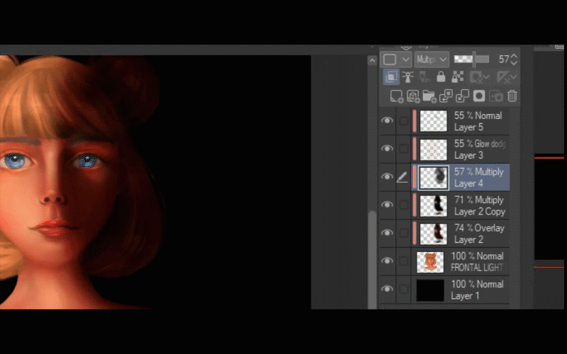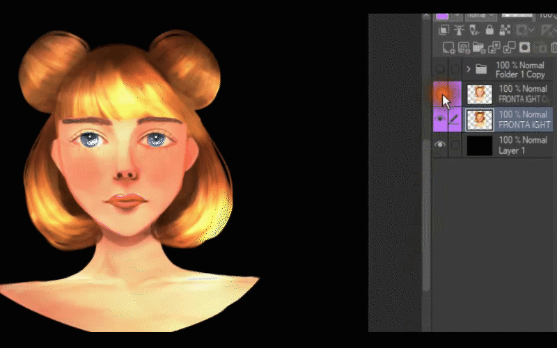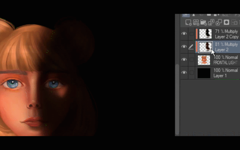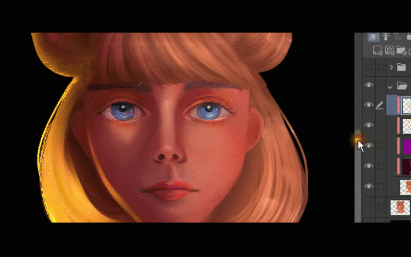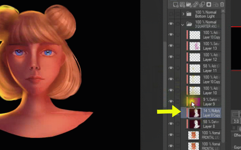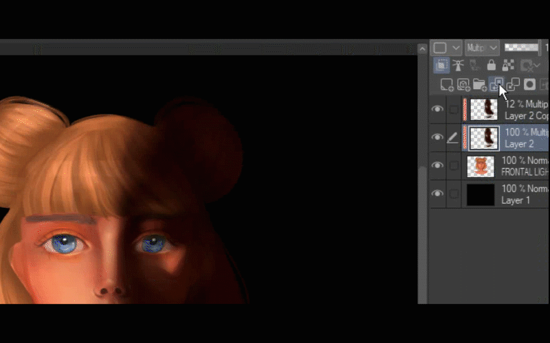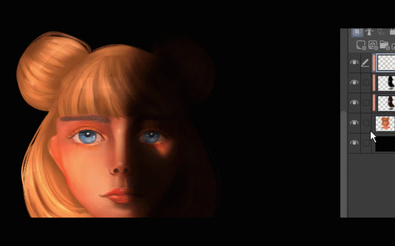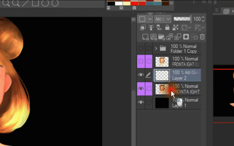 Après cela, je duplique le calque où j'ai peint la lumière sur ses cheveux.