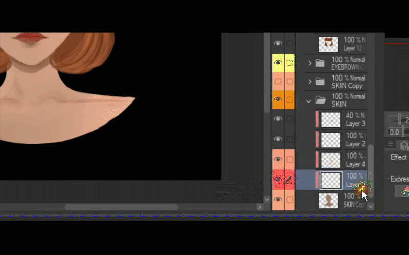Je vais donc commencer par aller dans mon dossier de peau et je vais créer un nouveau calque au-dessus.