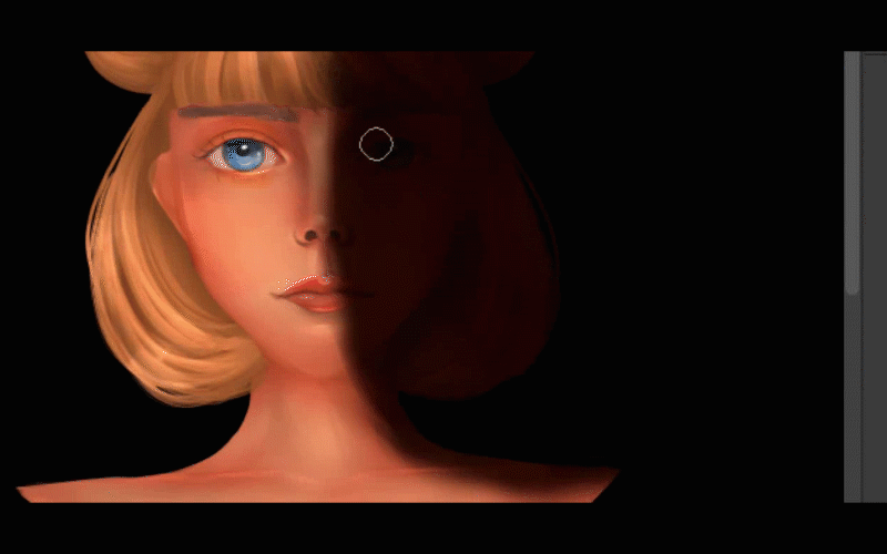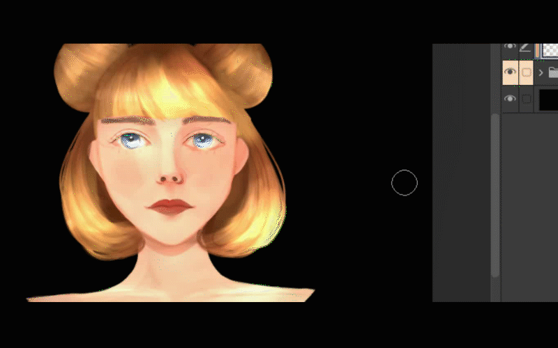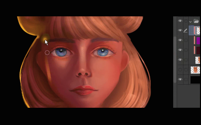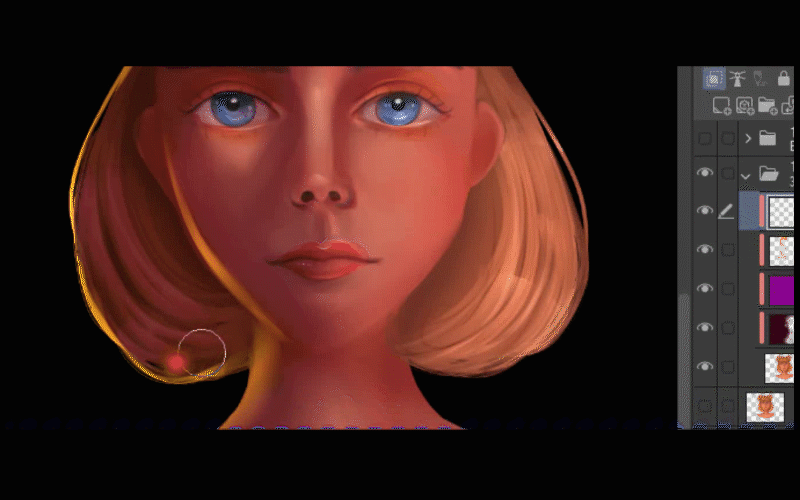Passons au pinceau et je continuerai à peindre la lumière autour de ses cheveux.