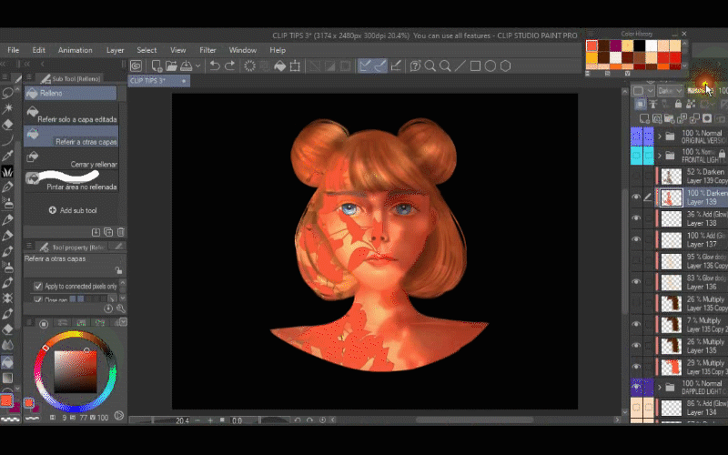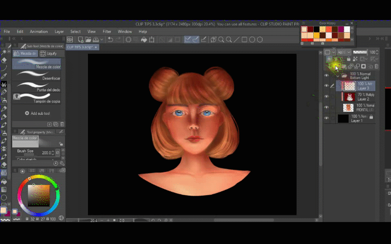 Comme vous pouvez le voir, la couleur n'affecte pas son visage, seulement les cheveux, c'est parce que j'ai les cheveux et la peau dans des dossiers différents et aussi parce que j'ai utilisé le masque d'écrêtage, alors n'oubliez pas de l'utiliser tout le temps.