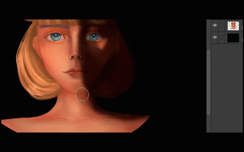 Ensuite, j'ajoute un autre calque et je continue d'ajouter des ombres sur les côtés de son visage.