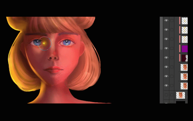 Ensuite, je commence à ajouter de la lumière à ses yeux.