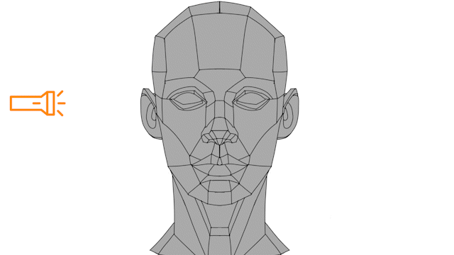 Ainsi, lorsque nous appliquons une lumière directionnelle, vous pouvez clairement voir la partie du visage qui est bien éclairée, et à peine quoi que ce soit dans la zone ombragée, y compris toute texture.