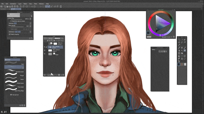 J'ai créé un nouveau calque en mode 'incrustation' (overlay), qui n'est pas écrêté sur le portrait.