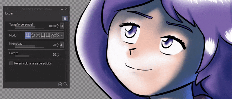Dans la dernière mise à jour de Clip Studio Paint, l'outil Fluidifier (Liquify) aidera à transformer et déformer le calque raster de l'illustration, corrigeant les détails et améliorant l'art final ! Voici un aperçu de l'utilisation de l'outil Fluidifier sur le profil.