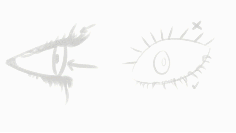Lorsque vous dessinez des cils de profil, vous pouvez les rendre plus tridimensionnels en ajoutant des cils supplémentaires sur le contour du globe oculaire, près des autres (comme illustré ci-dessous).