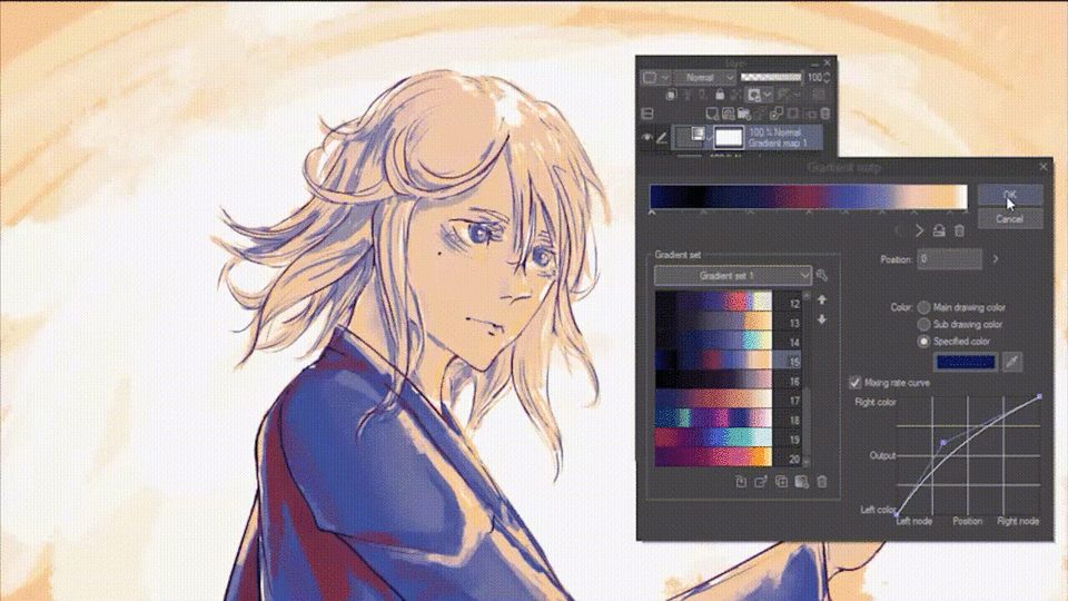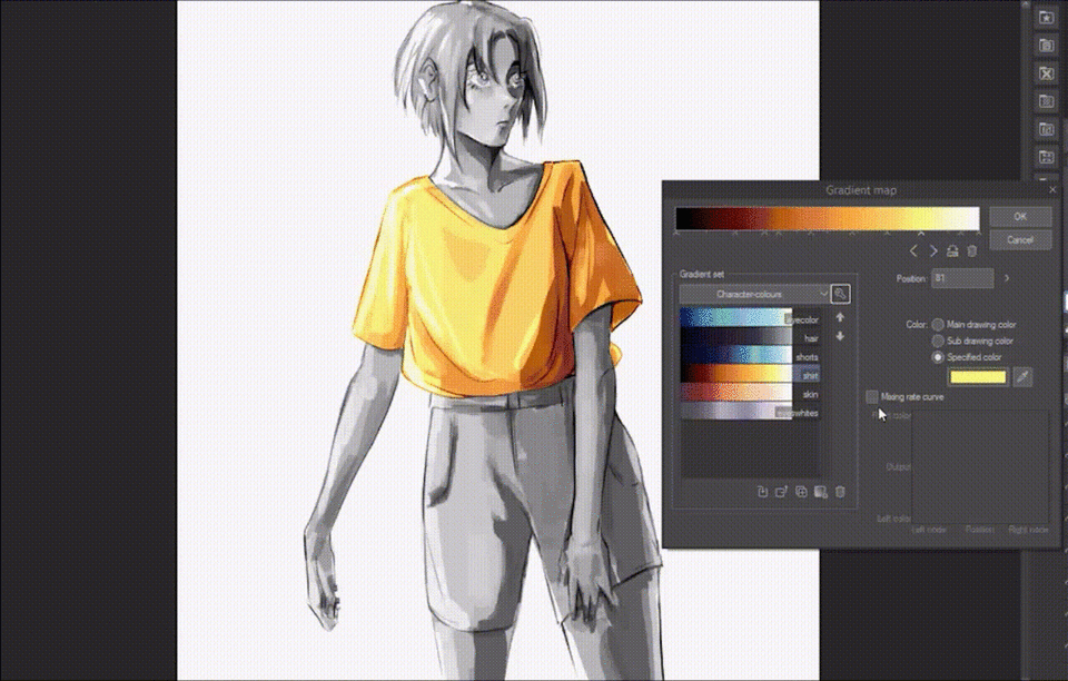 La plupart des cartes de dégradé finiront par modifier légèrement la répartition de vos valeurs, et grâce à cela, elles peuvent être utilisées pour effectuer des ajustements de couleur à votre dessin en même temps que pour modifier ses couleurs.