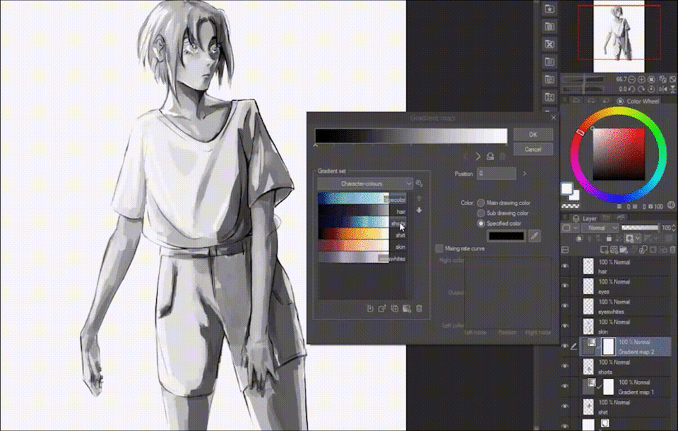 Il est recommandé d'utiliser les cartes de dégradé comme calques de correction lorsque vous améliorez les couleurs d'un dessin, car elles vous permettent d'expérimenter davantage.