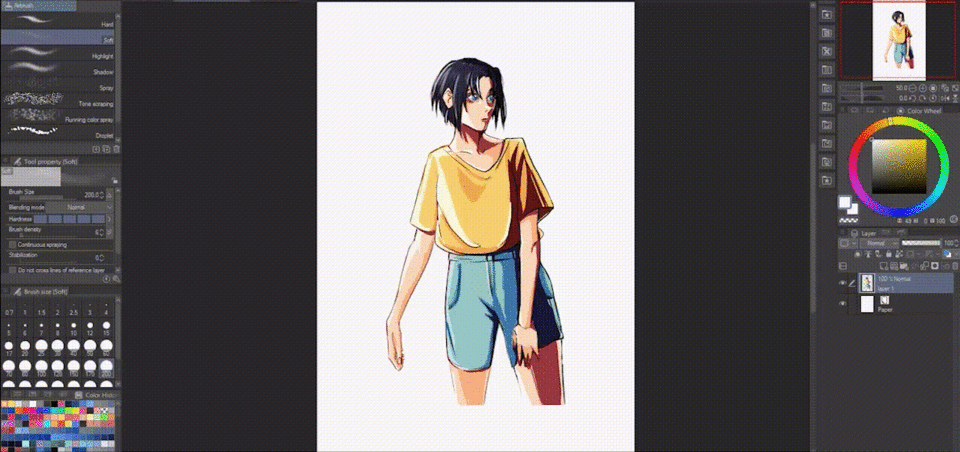 Cependant, si vous souhaitez préserver les valeurs globales de votre dessin, vous pouvez soit maintenir une faible opacité, soit utiliser le mode de calque "Couleur".