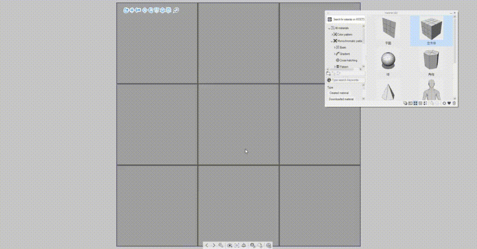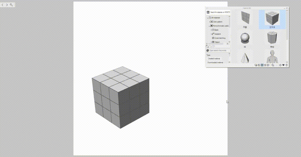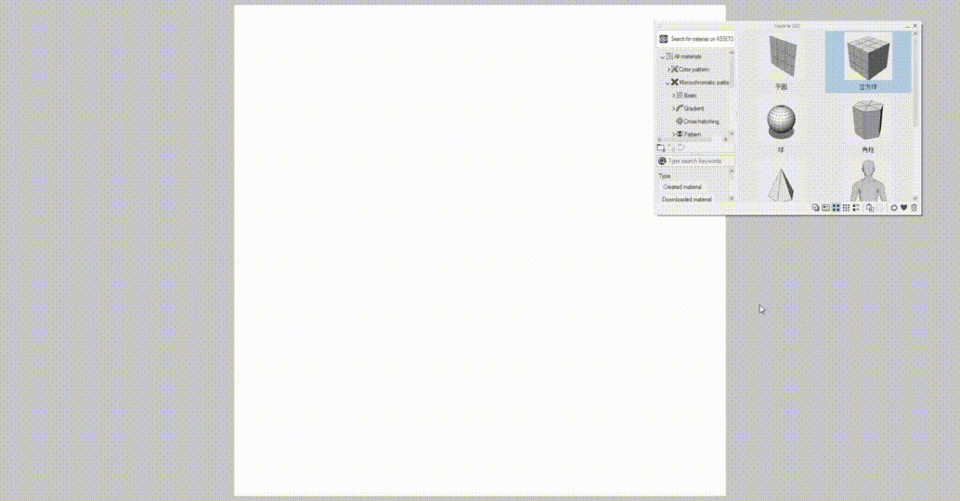 Pour commencer, essayons d'ajouter un cube sur la toile. Pour ce faire, vous pouvez faire glisser et déposer le cube de la palette [Matériau [3D]] vers la toile.