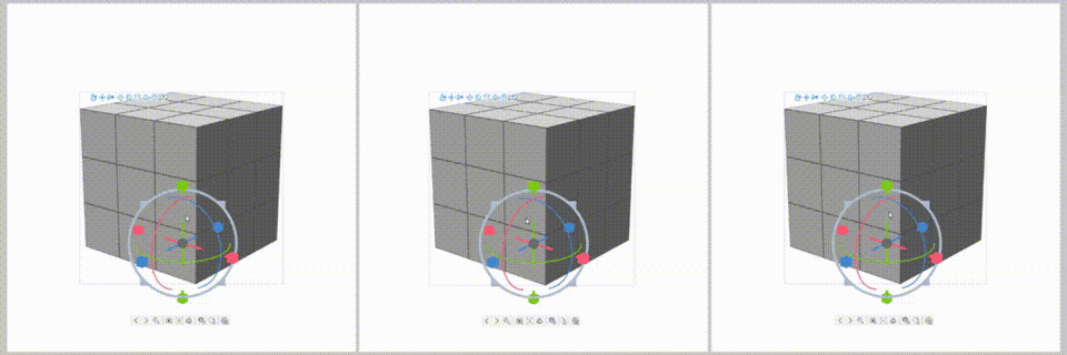 Pour déplacer/faire pivoter/redimensionner/mettre à l'échelle le cube, il suffit de cliquer une fois sur l'objet et de faire glisser la poignée correspondante illustrée ci-dessous. L'objet sera déplacé/pivoté/redimensionné/mis à l'échelle le long de l'axe de la poignée (axes X (rouge), Y (vert) et Z (bleu)).