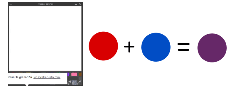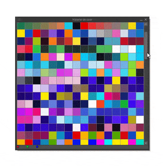 En cliquant sur les icônes de couleur, nous pouvons accéder aux fonctions de différents affichages de couleurs, aux ensembles de couleurs que nous avons créés et à l'historique des couleurs. L'inconvénient est que vous ne pouvez pas travailler avec cette fenêtre contextuelle pendant que vous peignez, vous choisissez simplement la couleur que vous voulez, puis vous la fermez, mais ne vous inquiétez pas, cela ne se produit plus avec les outils suivants.