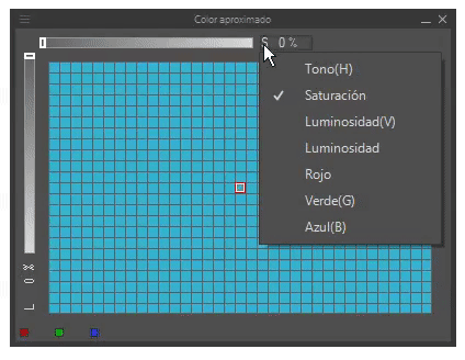 Chacun de ces éléments a déjà été analysé dans la section théorie, nous savons donc quel effet ils ont sur la couleur lorsqu'ils sont appliqués. Nous pouvons faire des combinaisons entre les barres comme : Teinte (H) et Vert (G). C'est une autre façon d'obtenir des couleurs pour nos palettes de couleurs.