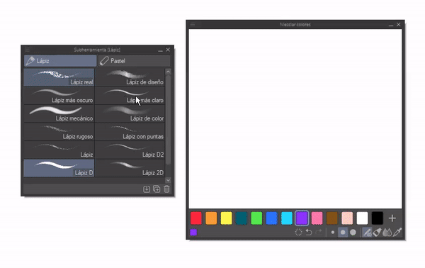 Cet outil est celui que j'ai montré au début et avec lui, vous pouvez mélanger les couleurs pour en générer de nouvelles de manière entièrement manuelle, comme on le ferait avec des méthodes traditionnelles analogiques.