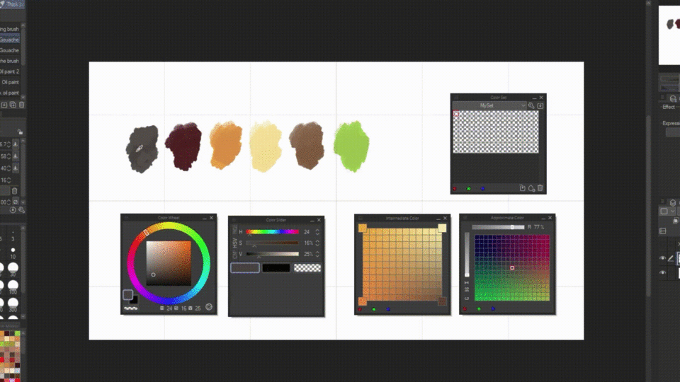 And with that, all of our colors are done! But using the canvas to store these colors while painting are not only tedious but also inefficient. Thankfully, CSP has color set and color history palettes. You wouldn’t believe how much this saved me.