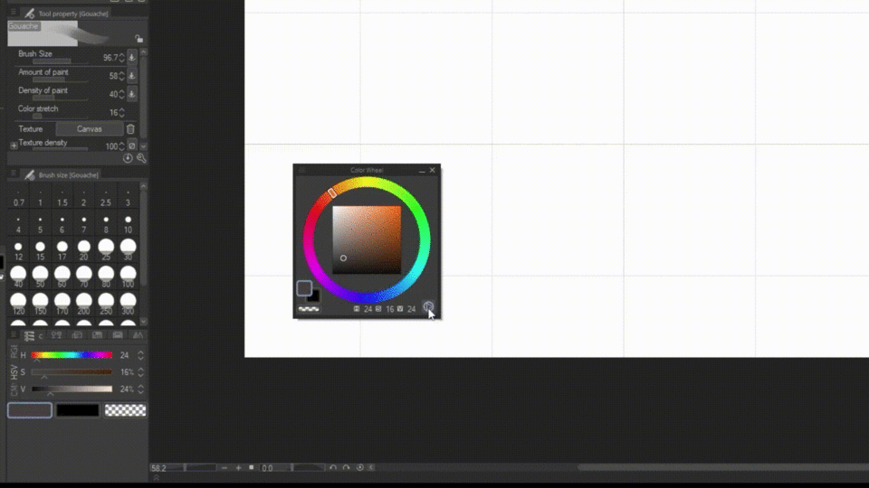 There is another feature in the color palette that I guarantee you’ll find useful. That’s the option to use your current subtool as your mixing palette brush.