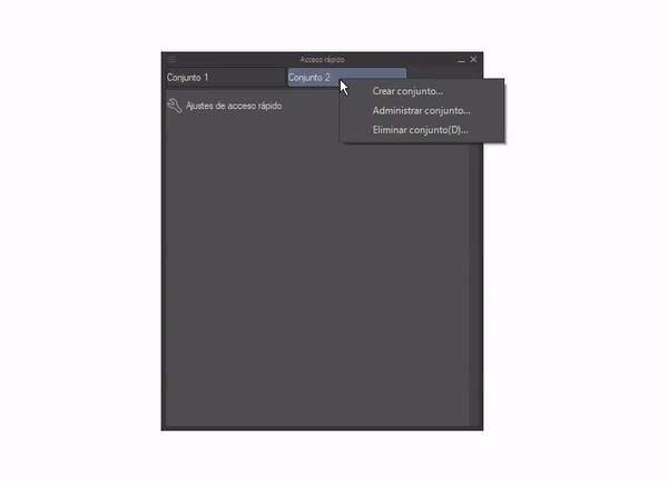 Nous pouvons créer autant d'ensembles que nous le souhaitons. Par défaut, le "Jeu 2" est vide. Pour créer un nouvel ensemble, il faut faire un clic droit sur la barre supérieure, un menu apparaîtra où se trouvera l'option "Créer un ensemble". Nous pouvons également supprimer des ensembles complets dans ce menu.