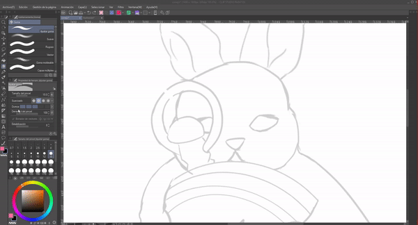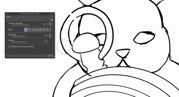 L'outil Fluidifier permet d'effectuer des corrections, c'est-à-dire qu'il permet de modifier la forme de la zone où nous l'utilisons. Principalement, c'est un outil qui est utile pour le lineart ou à la fin de l'illustration, pour faire les vérifications finales sans l'endommager.