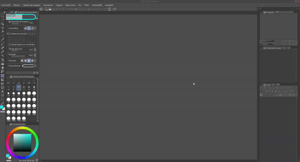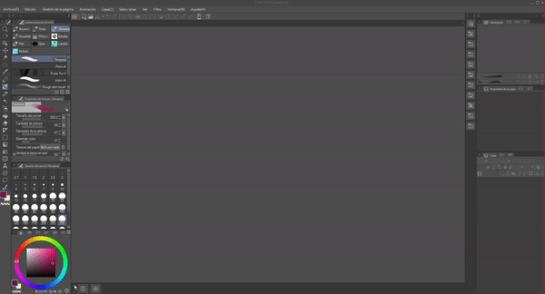 Avec cette fonction, nous pouvons masquer toutes les fenêtres, laissant l'espace à cent pour cent libre pour la toile et n'appeler que les fenêtres dont nous avons besoin, comme par exemple, la fenêtre d'accès rapide pour utiliser un outil que nous y avons ajouté, les pinceaux, le cercle de couleurs lorsque nous devons changer de couleur ou appeler la fenêtre de calque lorsque nous en avons besoin. Merveilleux sans aucun doute.