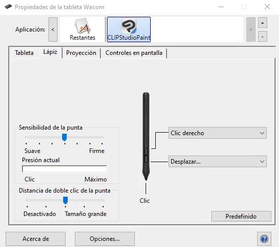 Nous pouvons également modifier les boutons de notre tablette graphique en utilisant des raccourcis pour faciliter grandement le processus de dessin ; de cette manière, nous pouvons maximiser notre productivité en utilisant des raccourcis avec les deux mains.
