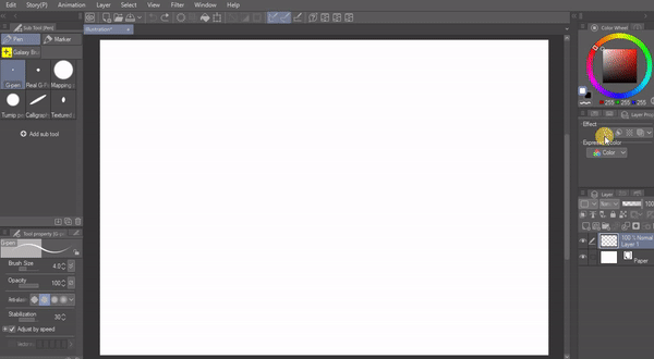 Tout d'abord, nous devons activer l'effet de bordure de Clip Studio Paint pour le calque. Cliquez sur la première icône sous le menu d'effets. (Voir l'image ci-dessous.)