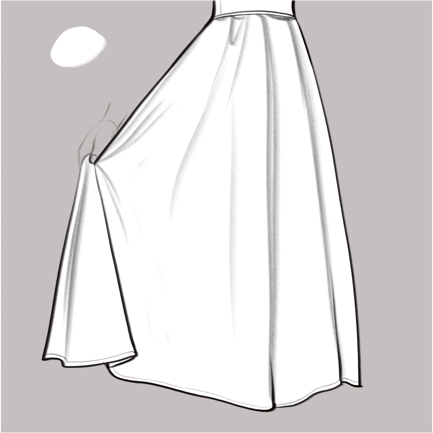 Pour l'exemple, j'ai opté pour une longue jupe blanche, comme celle que portent certaines mariées le jour de leur mariage.