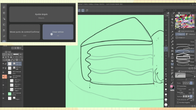 • Dans les outils de forme : courbe de Bézier, par exemple, un sommet est créé en sélectionnant « Alt » et un angle est généré avec la touche « Maj » (Shift). Pour confirmer la courbe de Bézier, appuyez sur « Ctrl ». Appuyez sur « Ctrl » puis sur la ligne que vous souhaitez modifier.