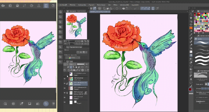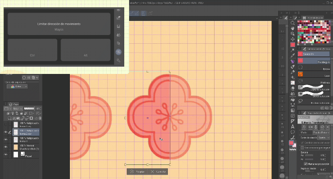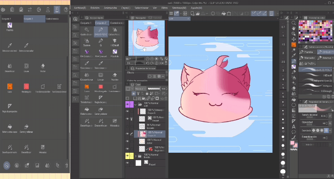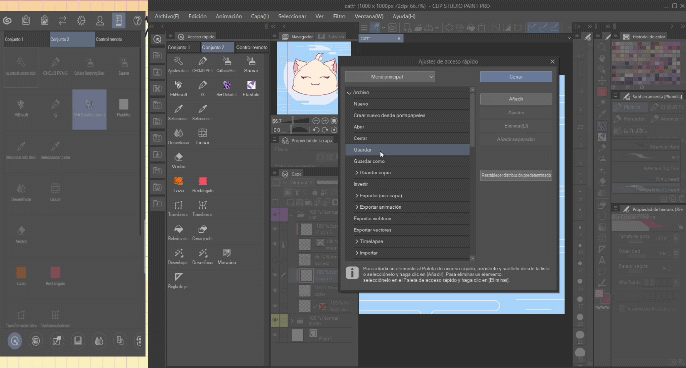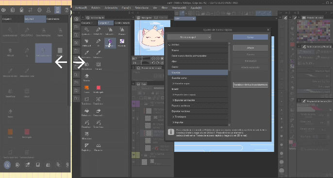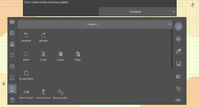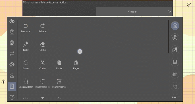 À première vue, il nous donne un mode d'emploi pour manipuler la toile. Cette option sera également votre préférée car ici nous accélérons beaucoup le travail pour déplacer la toile, et si vous utilisez Clip Studio Paint depuis votre ordinateur, les raccourcis peuvent parfois être compliqués et ce panneau a tous les raccourcis sur un seul écran pour que vous puissiez le manipuler avec 1 à 3 doigts.