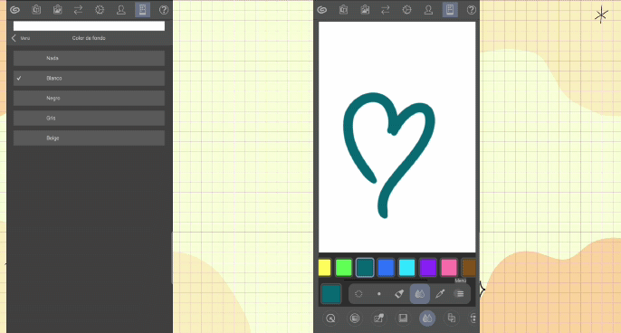 • Configurations : ici, nous pouvons changer la couleur de la toile : rien ou transparent, blanc, noir, gris et beige.