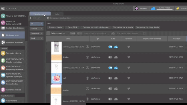 F. Nous sélectionnons « Sur cet appareil », qui se trouve à côté de « cloud ». Et voilà ! Vous savez maintenant comment télécharger des dessins traditionnels sur votre ordinateur pour continuer à éditer dans Clip Studio Paint.