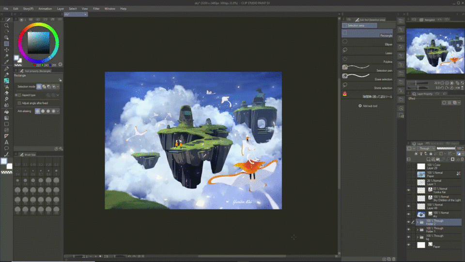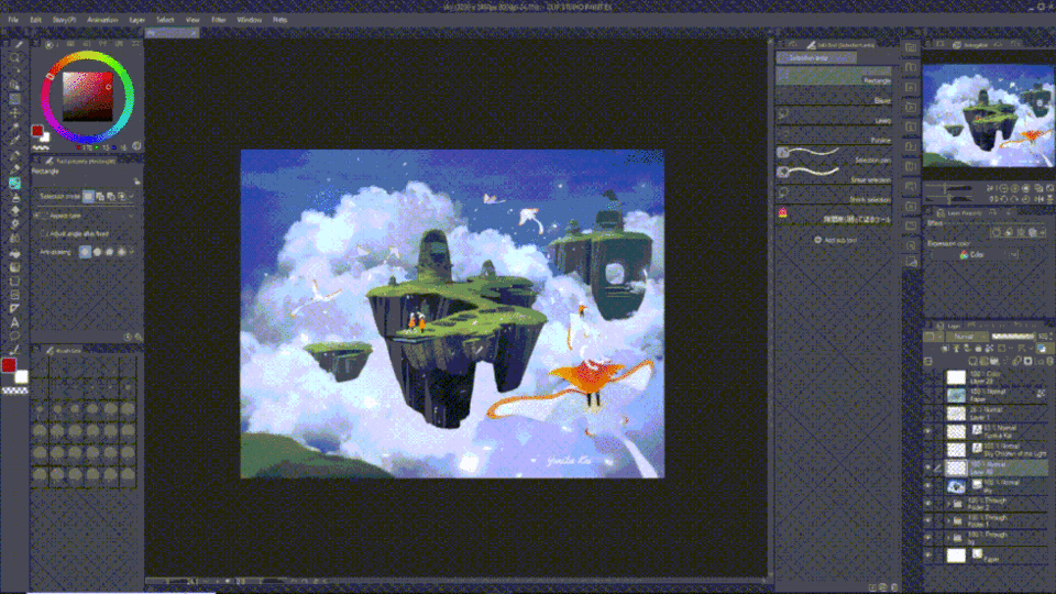 Si vous voulez sélectionner ce que vous venez de dessiner sur un calque, au lieu d'utiliser l'outil lasso pour sélectionner la partie, vous pouvez gagner du temps en maintenant [Ctrl] (ou Commande) enfoncé et en cliquant sur ce calque ! La même chose s'applique si vous voulez sélectionner le dessin dans un dossier entier. Il suffit de maintenir [Ctrl] enfoncé → cliquer sur le dossier.