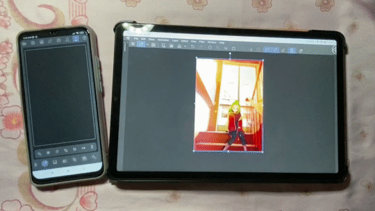 Vous pouvez télécharger une photo et la visualiser sur votre téléphone. Cela peut être utilisé pour des références ou des fiches de personnages. Vous pouvez choisir parmi les couleurs situées sous l'image, car l'ensemble des couleurs est extrait de la photo. Vous pouvez également sélectionner une couleur à l'aide de la [Pipette] et elle sera enregistrée sur la tablette.
