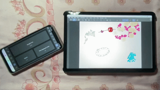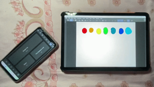 Vous pouvez utiliser la Roue chromatique de la même manière que votre palette de couleurs. Puisque le téléphone est lié à la tablette. Toute couleur que vous choisirez sera enregistrée sur votre appareil principal (la tablette).