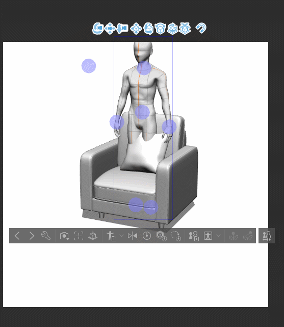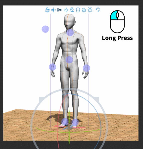 2. Pour faire pivoter la paume, veuillez trouver le point de contrôle violet correspondant au poignet.