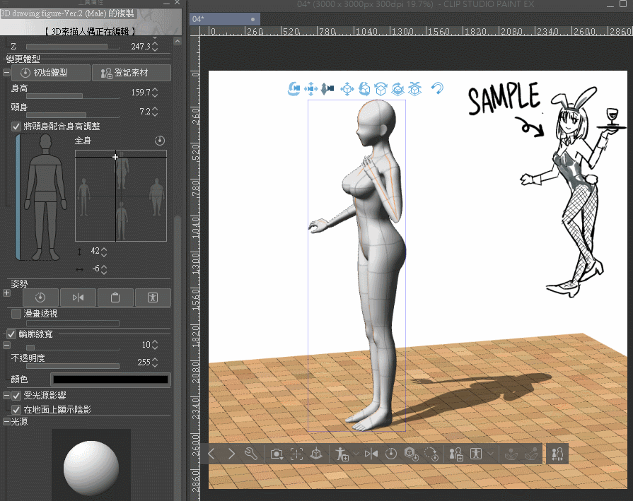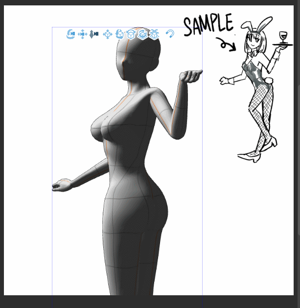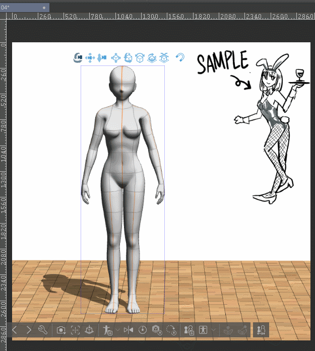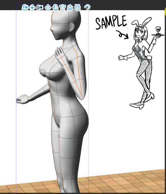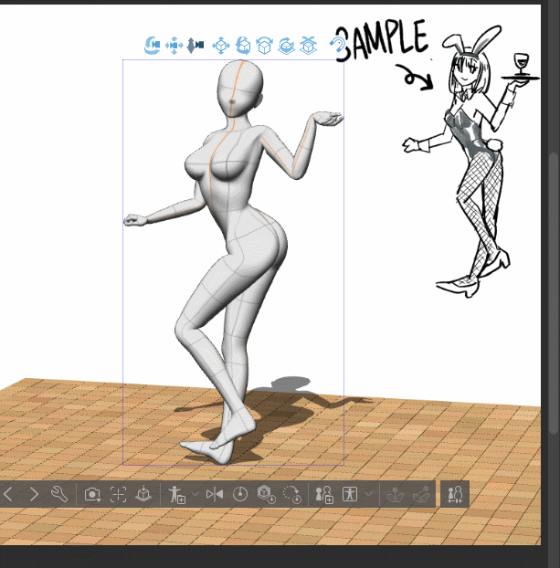 ✨Lorsque vous avez déjà un modèle sur votre toile et que vous souhaitez placer la figurine de dessin 3D dans le même espace (sous la même perspective) que ce modèle,