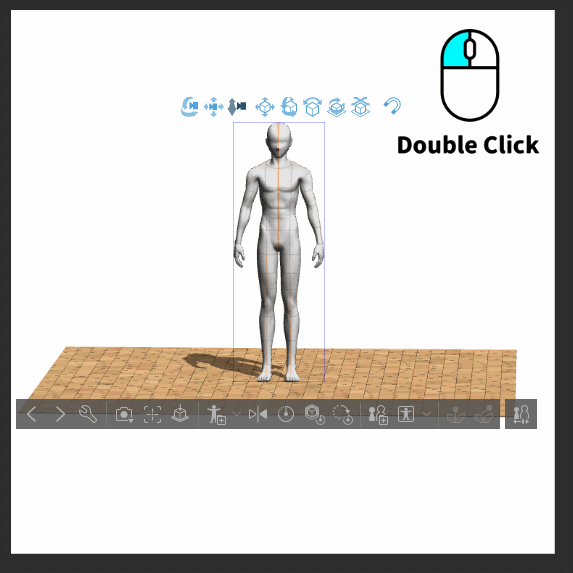 Double-cliquez sur la figurine de dessin 3D avec le bouton gauche de la souris pour faire apparaître l'anneau de contrôle situé en bas (point central de l'objet).